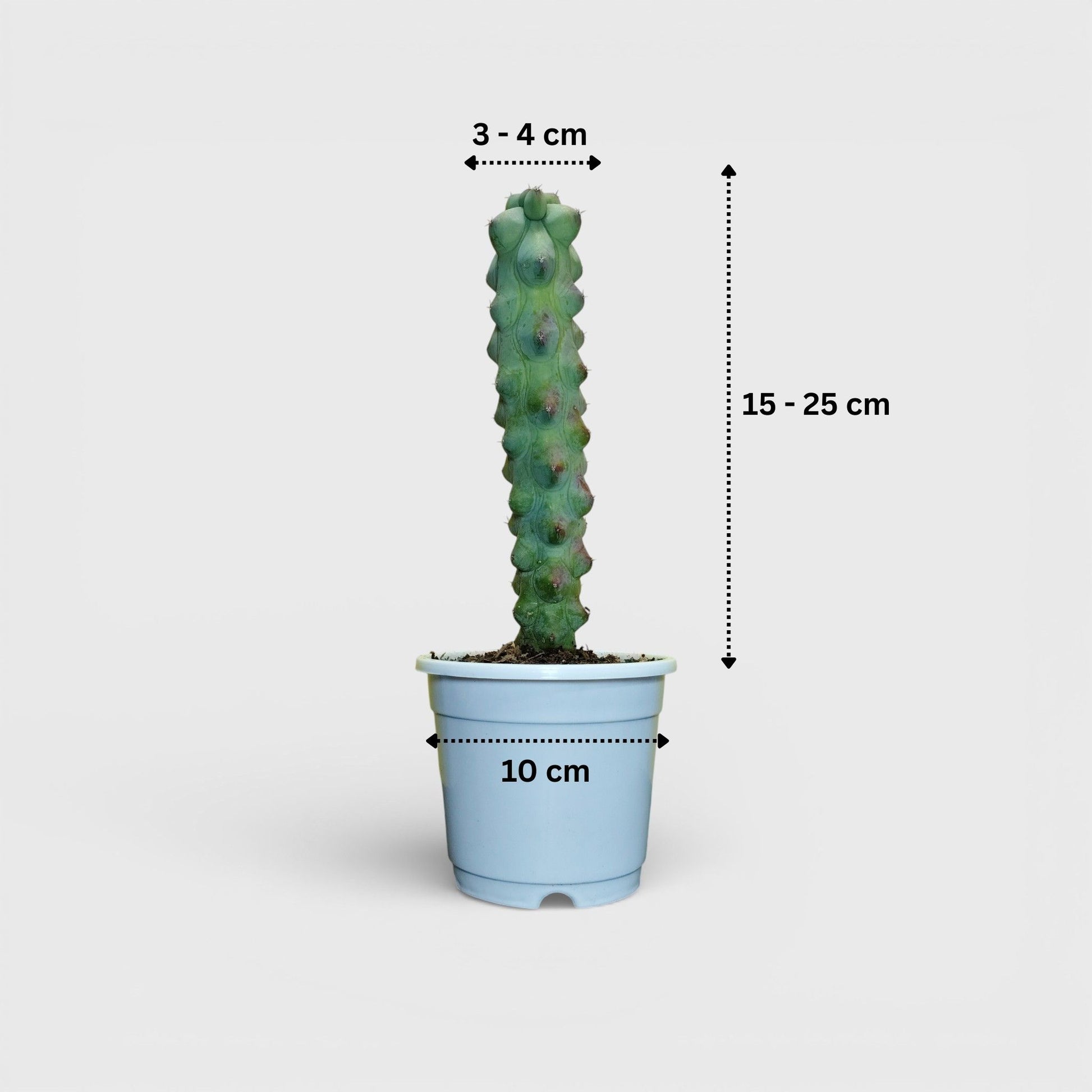 This cactus is extremely hardy and well suited to indoor growing. Its thick stems store water efficiently, making it a drought-tolerant plant that thrives with minimal care. With adequate light, it maintains its blue tone and firm structure, growing slowly and steadily over time. In ideal conditions, mature plants may eventually develop branching growth, adding to their architectural appeal.