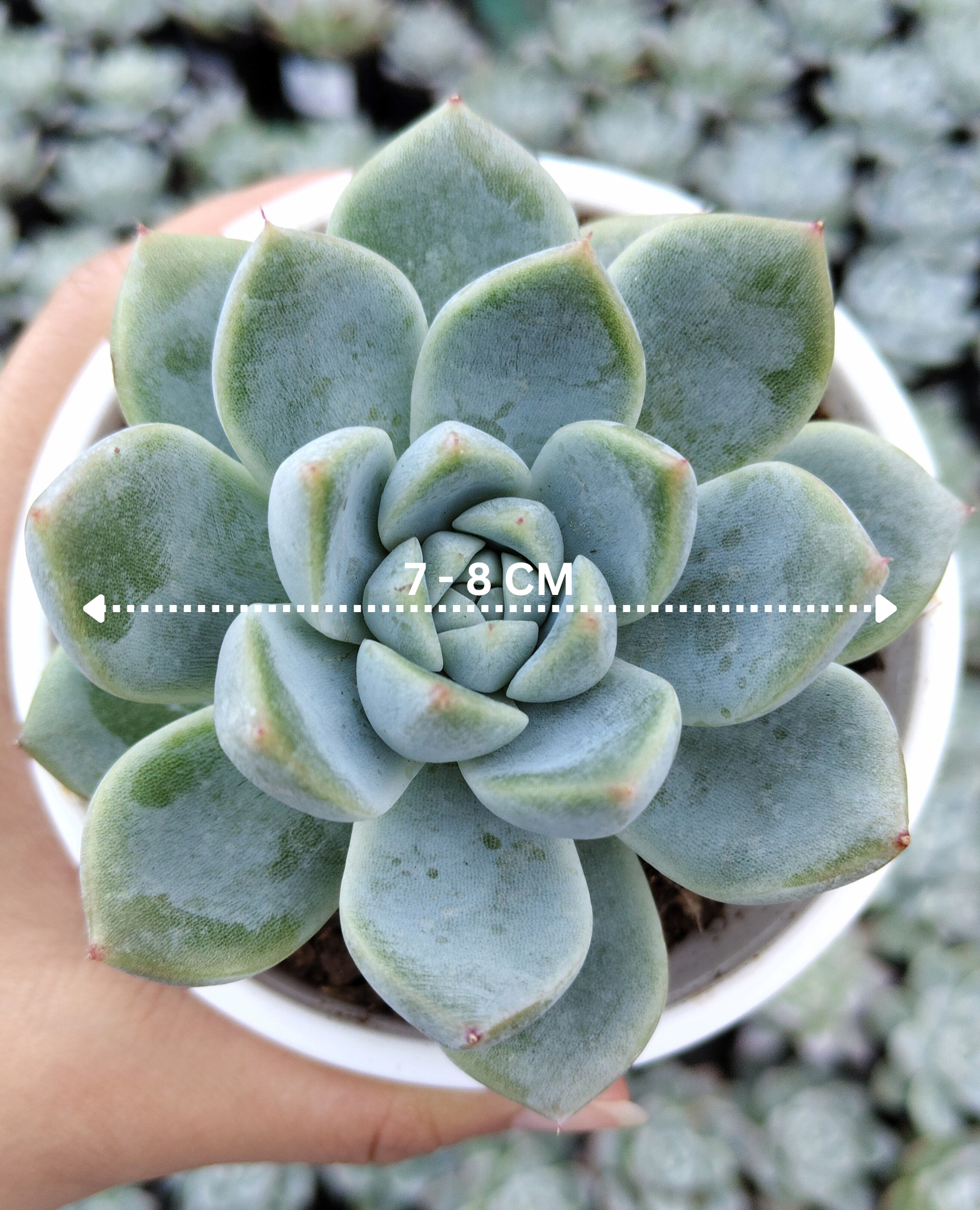 The Echeveria Alba Beauty is a gorgeous pastel rosette succulent admired for its frosted coating and soft blue-pink hues. With its smooth, elegant leaf shape and compact form, it adds a clean, modern touch to desks, windowsills, and decorative indoor planters. This easy-care succulent thrives in bright light and minimal watering, making it a reliable choice for beginners and collectors seeking a beautiful low-maintenance plant.