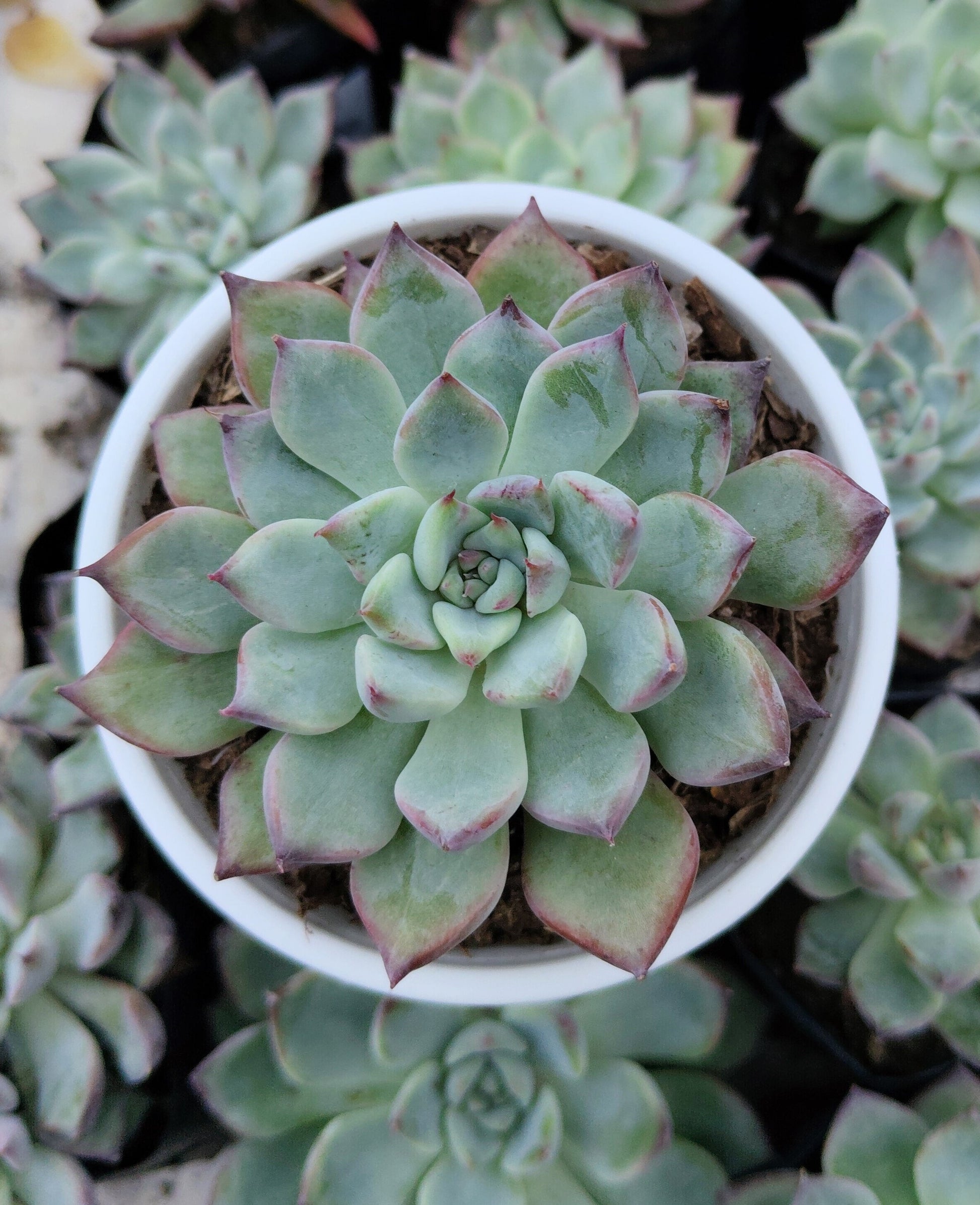 The Echeveria Apus is a stunning powdery rosette succulent admired for its soft blue-green leaves and smooth matte finish. Compact, elegant, and naturally symmetrical, it adds a refined decorative touch to desks, windowsills, planters, and indoor arrangements. This easy-care succulent thrives in bright light and minimal watering, making it a perfect match for beginners and plant lovers who appreciate clean, pastel-toned rosette varieties.