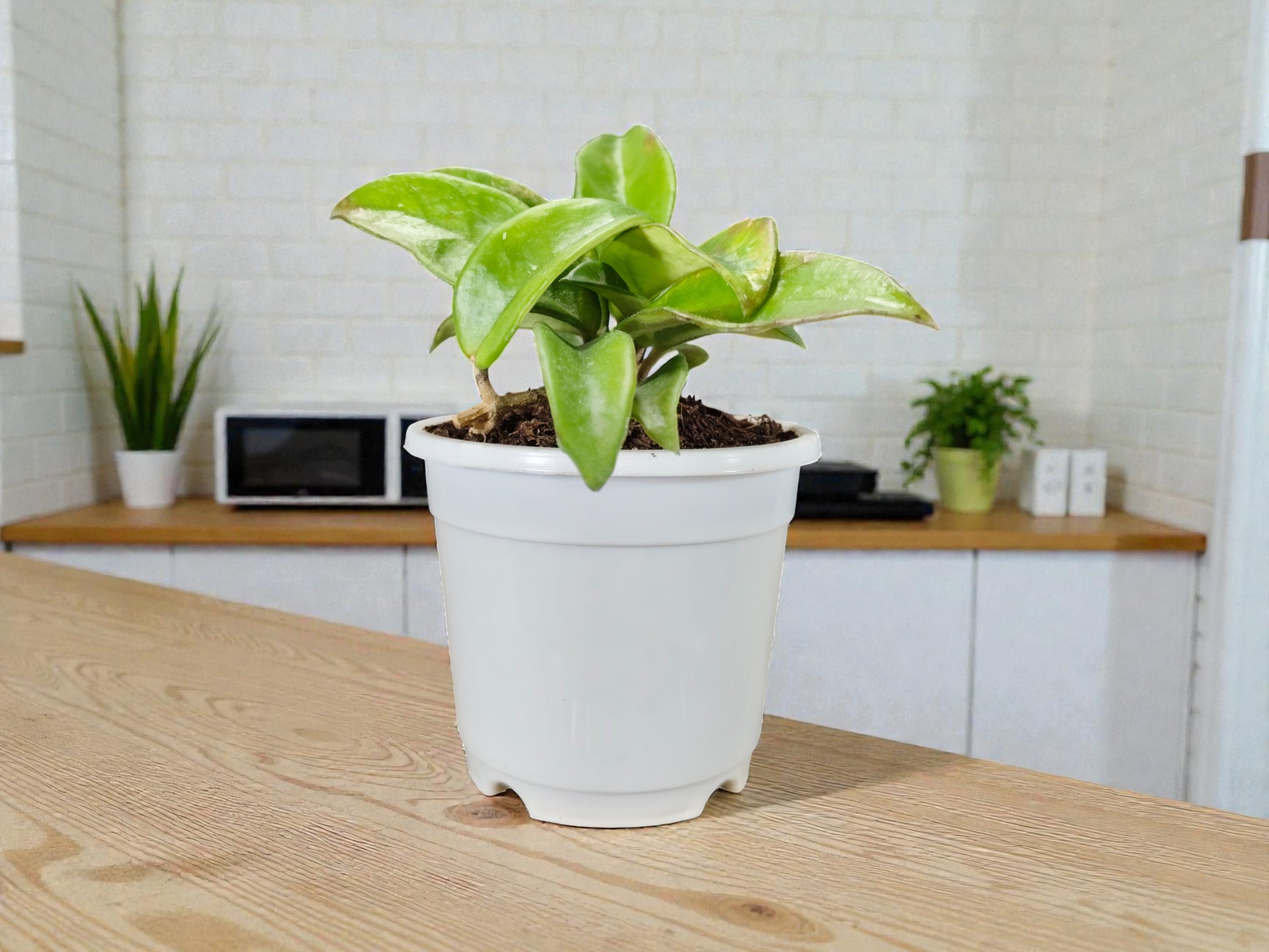 Hoya Krimson Queen Green is a highly sought-after variegated hoya loved for its thick, waxy leaves edged with creamy white and fresh green tones. This graceful trailing plant brings a soft tropical charm to indoor spaces and looks stunning on shelves, window ledges, hanging planters, or bright corners of your home.