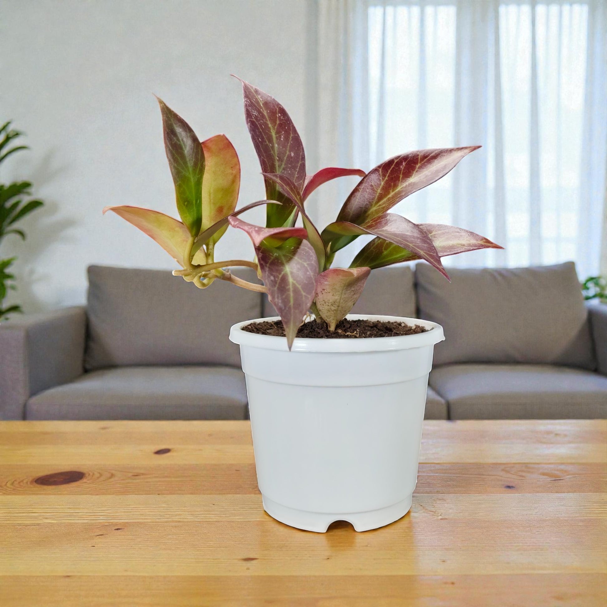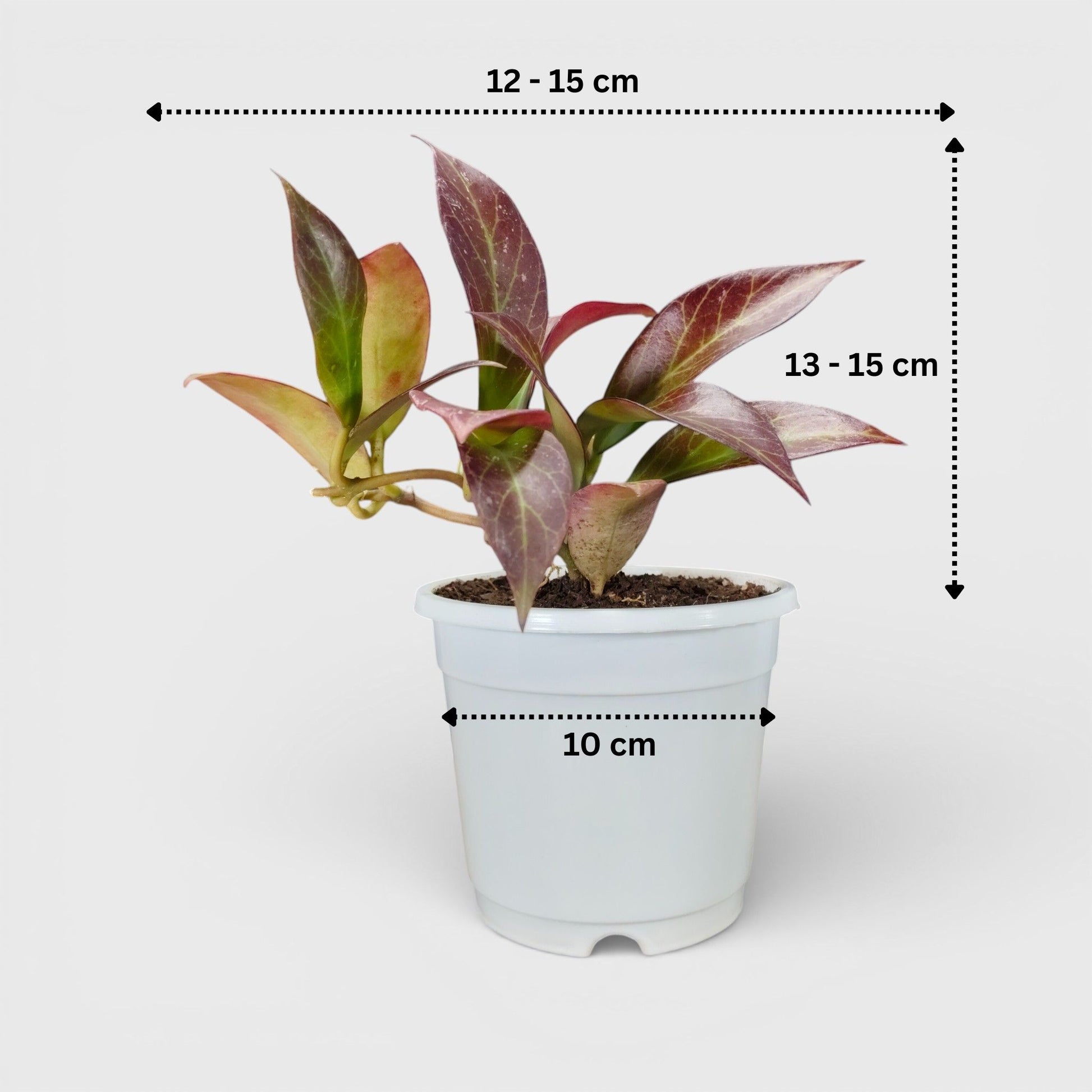 Hoya Sunrise is a beautiful hybrid Hoya prized for its compact oval leaves that turn vibrant shades of red, bronze, and orange under bright light. Its trailing growth habit makes it perfect for hanging planters, shelves, and indoor displays, adding a colorful and premium look to any space.