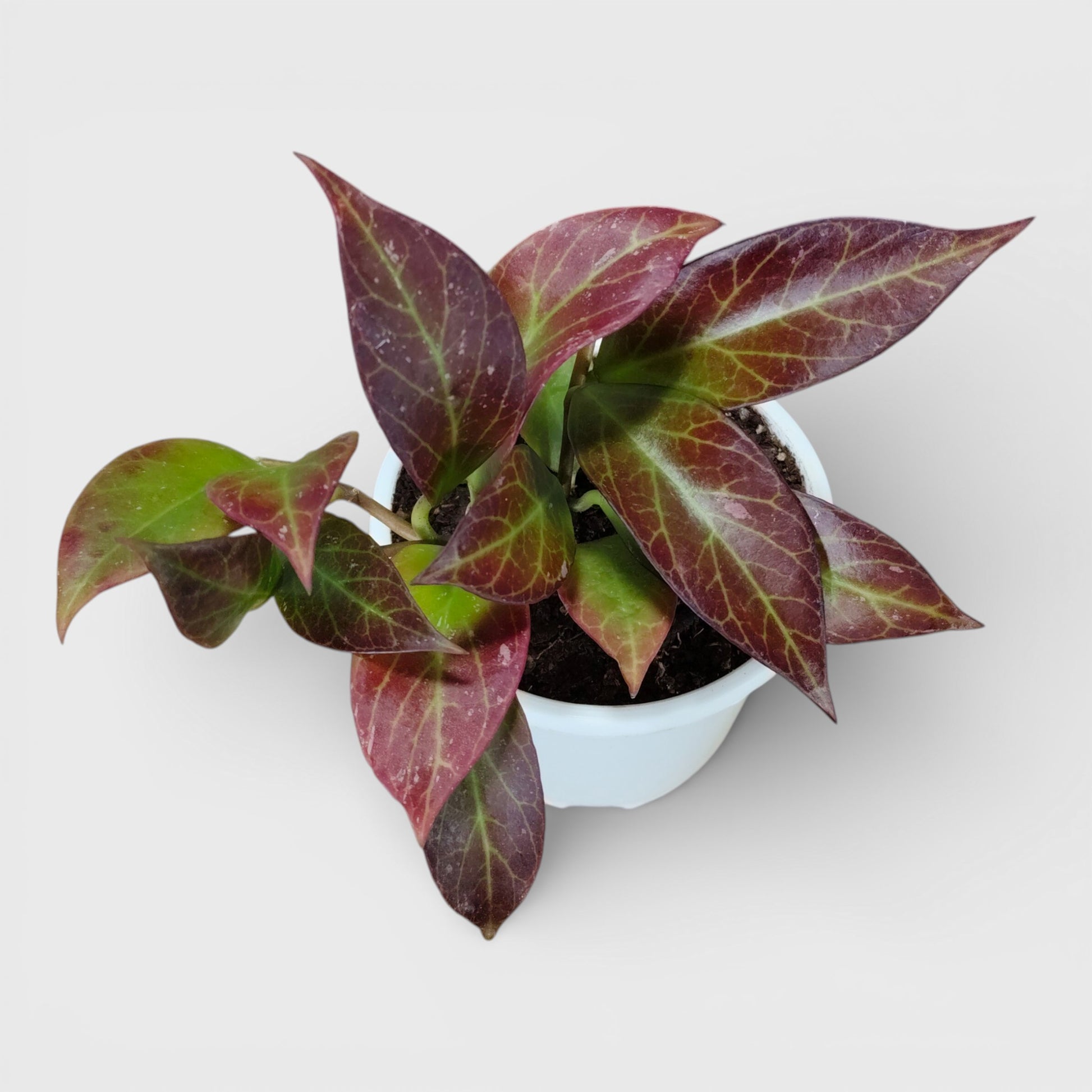 - Hybrid Hoya with stunning red and bronze “sunrise” foliage
