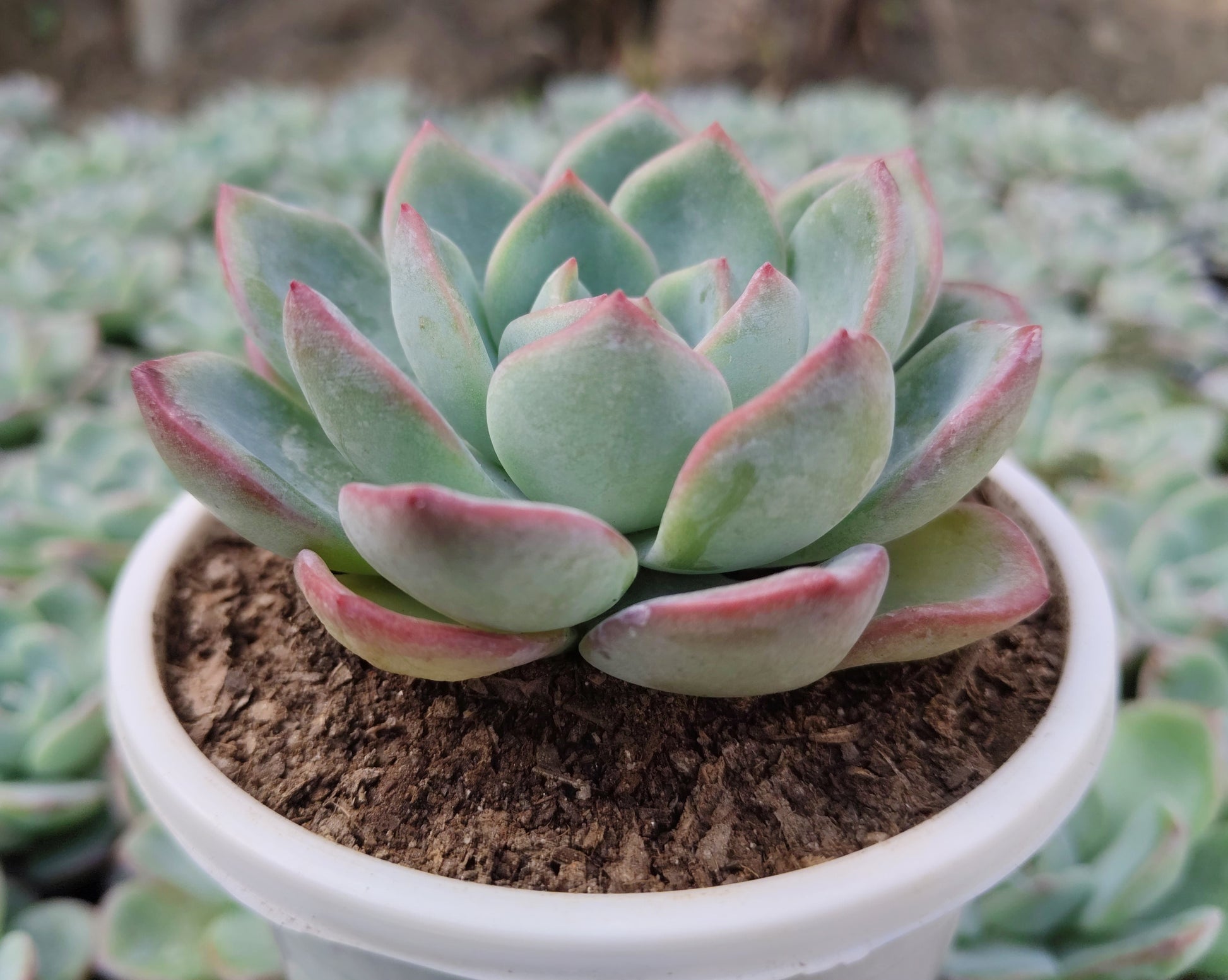 The Echeveria Icy Green Hybrid is a premium pastel-toned succulent featuring a compact mint-green rosette coated with a soft frosted finish. Its hybrid vigor gives it stronger growth, sharper form, and a more pronounced icy appearance compared to the standard variety. Perfect for indoor décor, this plant adds a calm and refreshing aesthetic to desks, windowsills, and shelves. With simple care needs and excellent drought tolerance, it’s an ideal choice for beginners and collectors alike.