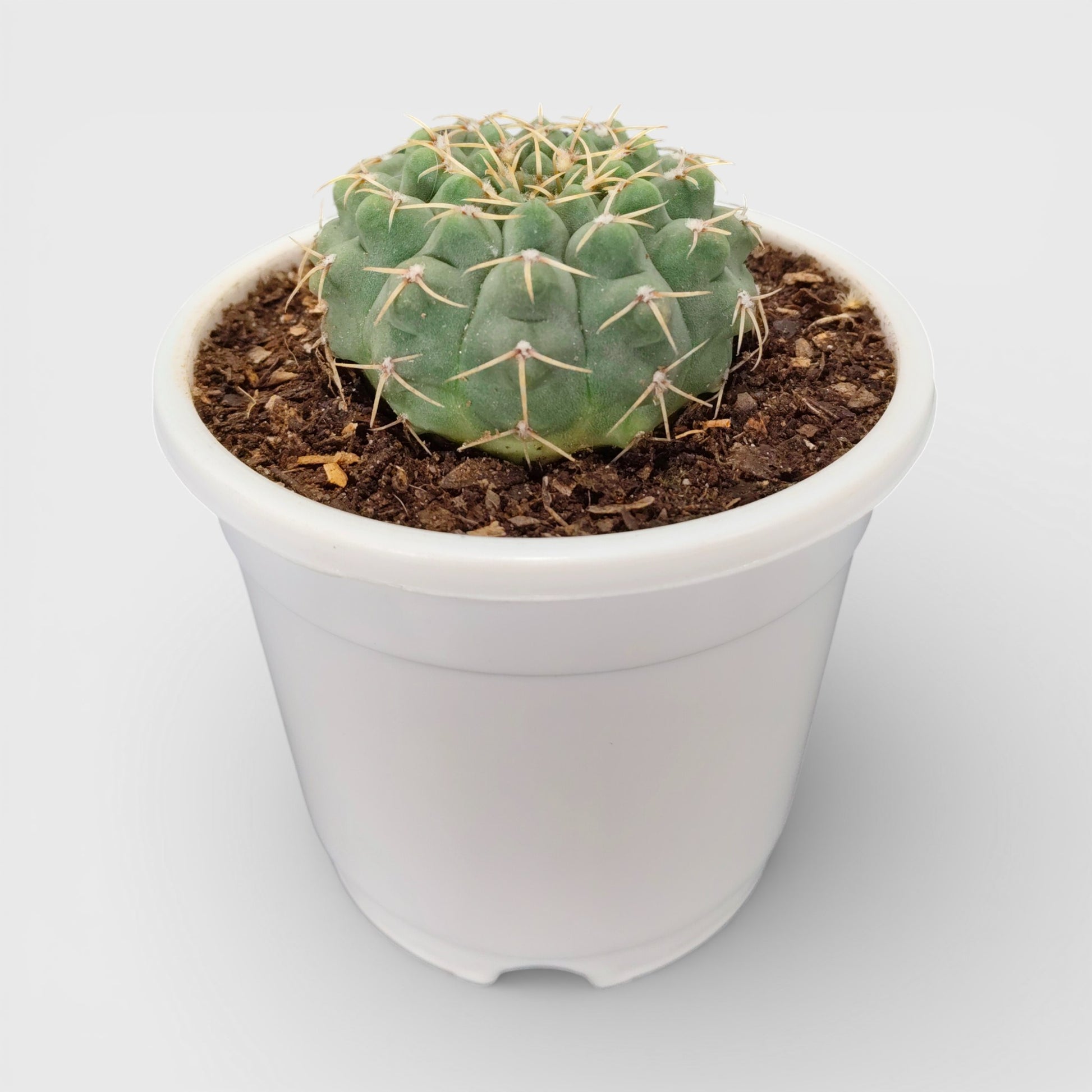 This cactus is extremely easy to care for and well suited to indoor environments. It stores water efficiently in its fleshy stem, making it a drought-tolerant plant that prefers infrequent watering. Gymnocalycium hybrids grow slowly and retain their shape for years, offering long-lasting visual appeal with minimal effort. With maturity and proper light, it may reward growers with delicate flowers emerging from the crown.