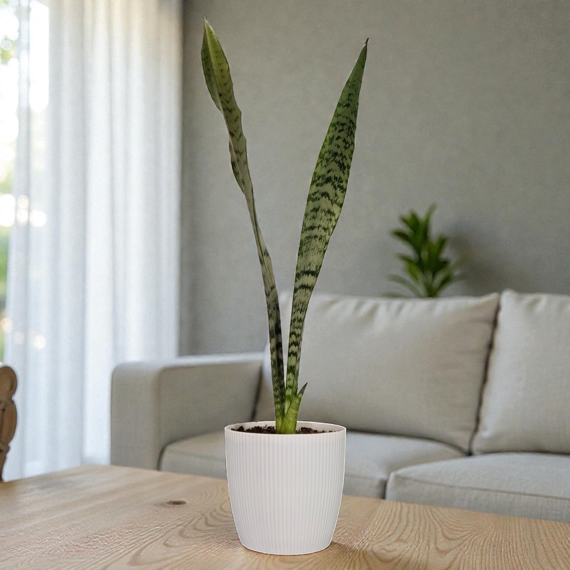 Sansevieria Zeylanica Snake Plant is a classic and highly reliable indoor plant known for its tall, upright leaves patterned with soft green and grey horizontal markings. Its clean, vertical growth makes it ideal for living rooms, bedrooms, offices, corners, and entryways where it adds height and structure without visual clutter.